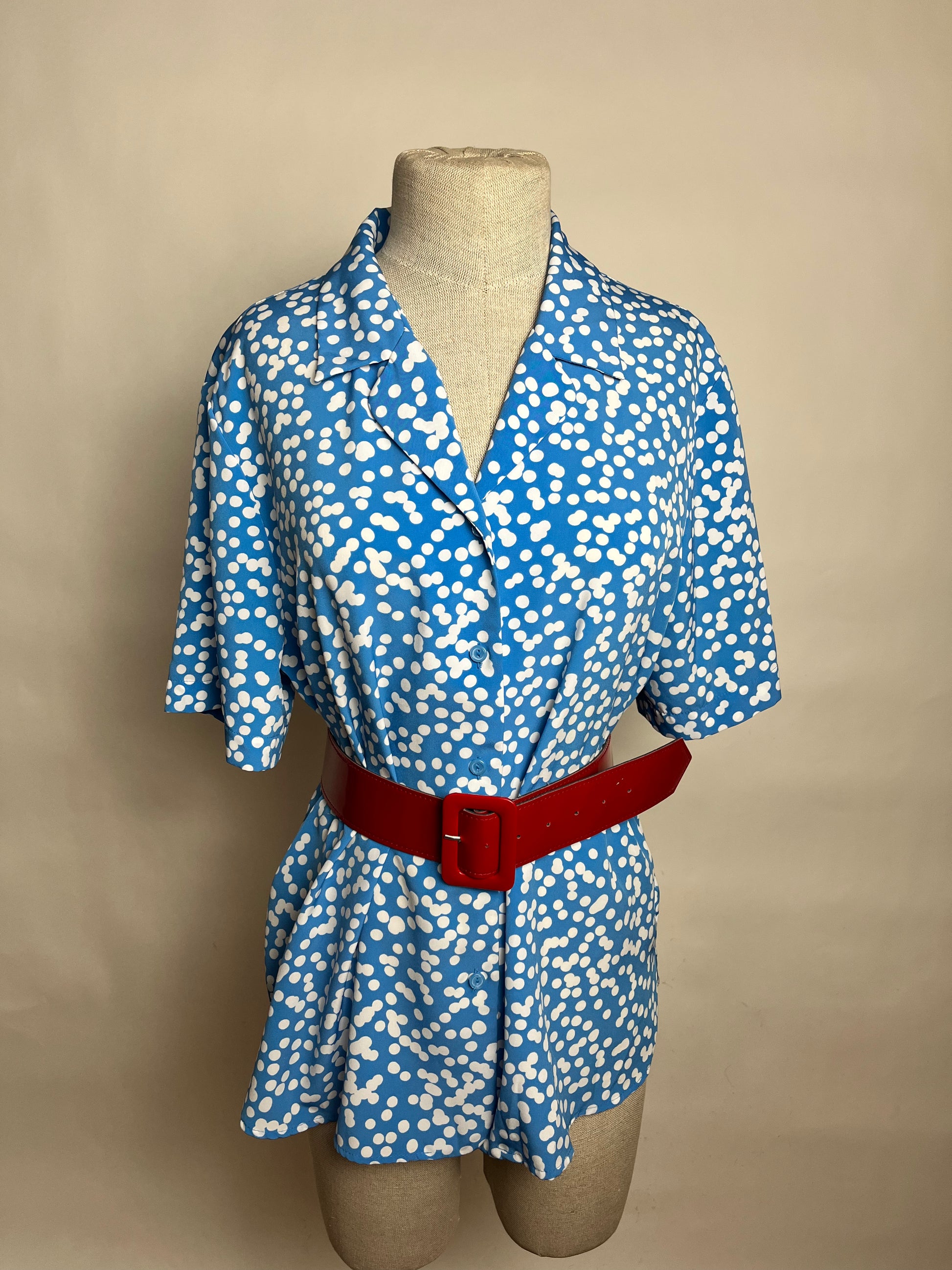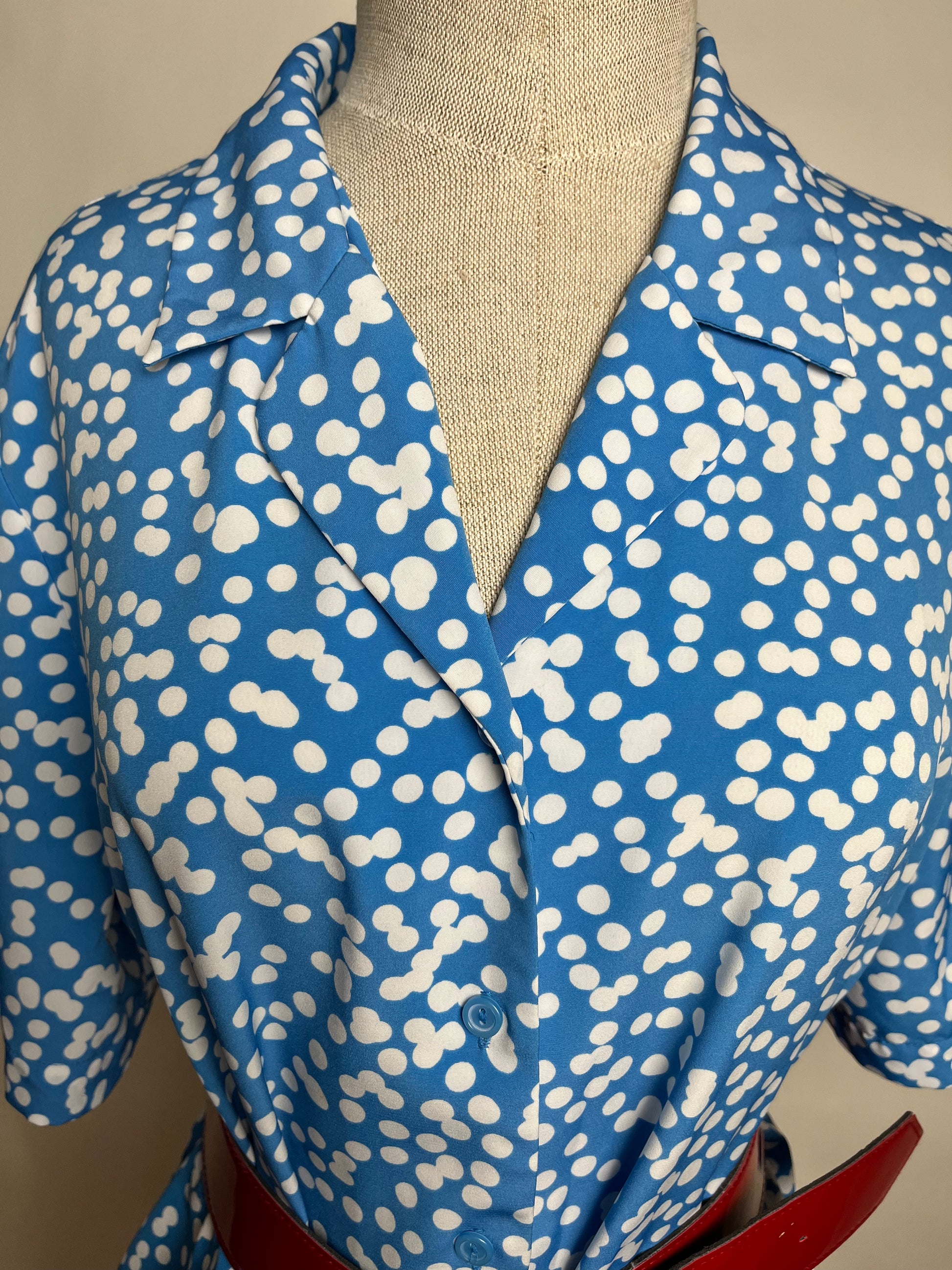 80s blue white dot blouse